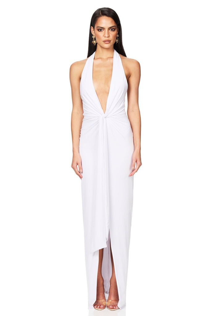 Look to plunging halter necklines, stunning twist details and a floor length fit for a mesmerising style moment. Crafted from our signature stretch jersey with a stunning sash and low back, our Legacy Gown is the ultimate must-have.