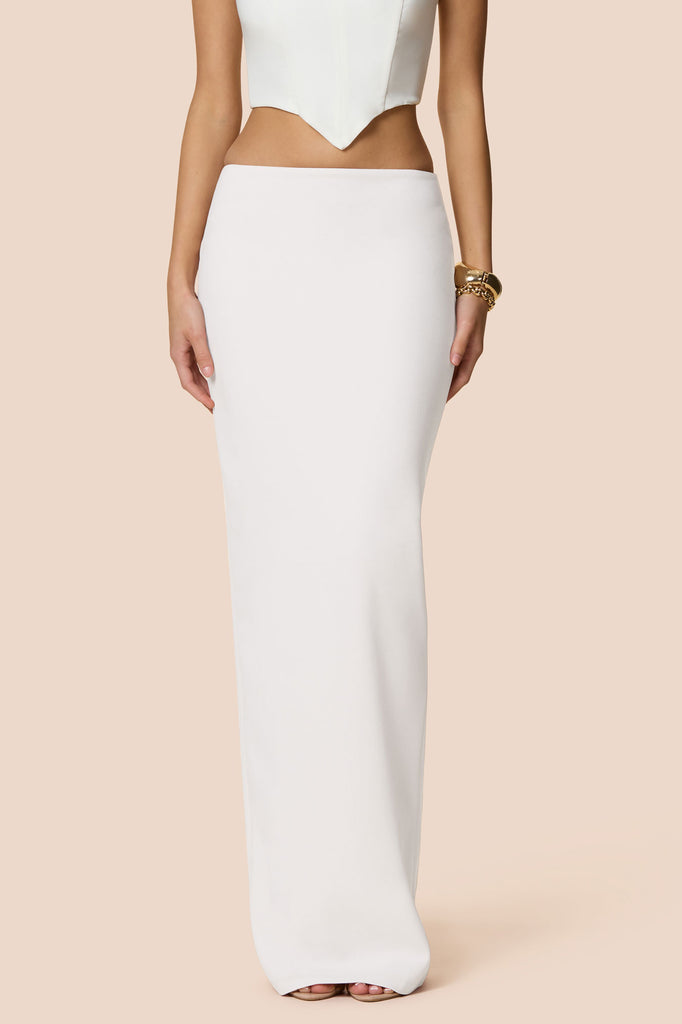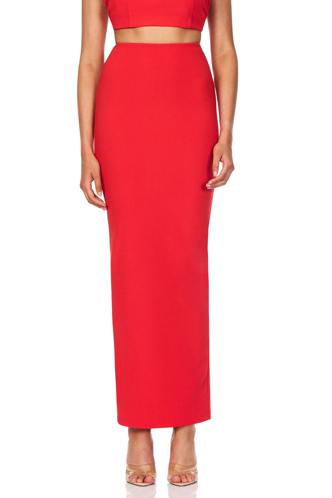 Classic high waisted pencil maxi skirt, with split at back hem and invisible zip at waist. Crafted in our stretch bonded crepe, fully lined.