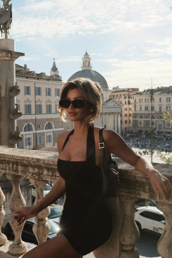 Signature bodycon style crafted from our figure hugging scuba crepe. Features a halter neck fit with wide supportive straps. Fully lined with invisible zip closure at centre back.