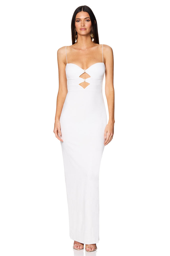 Exude elegance with the timeless cut of this exquisite design. Crafted from our body hugging scuba fabrication with stunning cut-out details at the centre bust. Features a sweetheart neckline, shimmering accents & a split at the back hem for ease of wear.