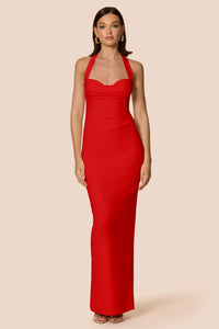 Unforgettable asymmetrical gown with flattering ruching and a thigh high split. Crafted from super soft jersey with an invisible zip closure at the centre back.