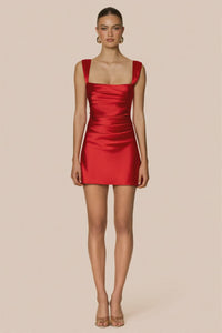Sweet and sultry. The Dream Mini in luxe satin hugs effortlessly with tucking design detail and wide adjustable shoulder straps. With a structured bust and side boning, she’s your new go-to for champagne nights, garden affairs, or birthday bests.